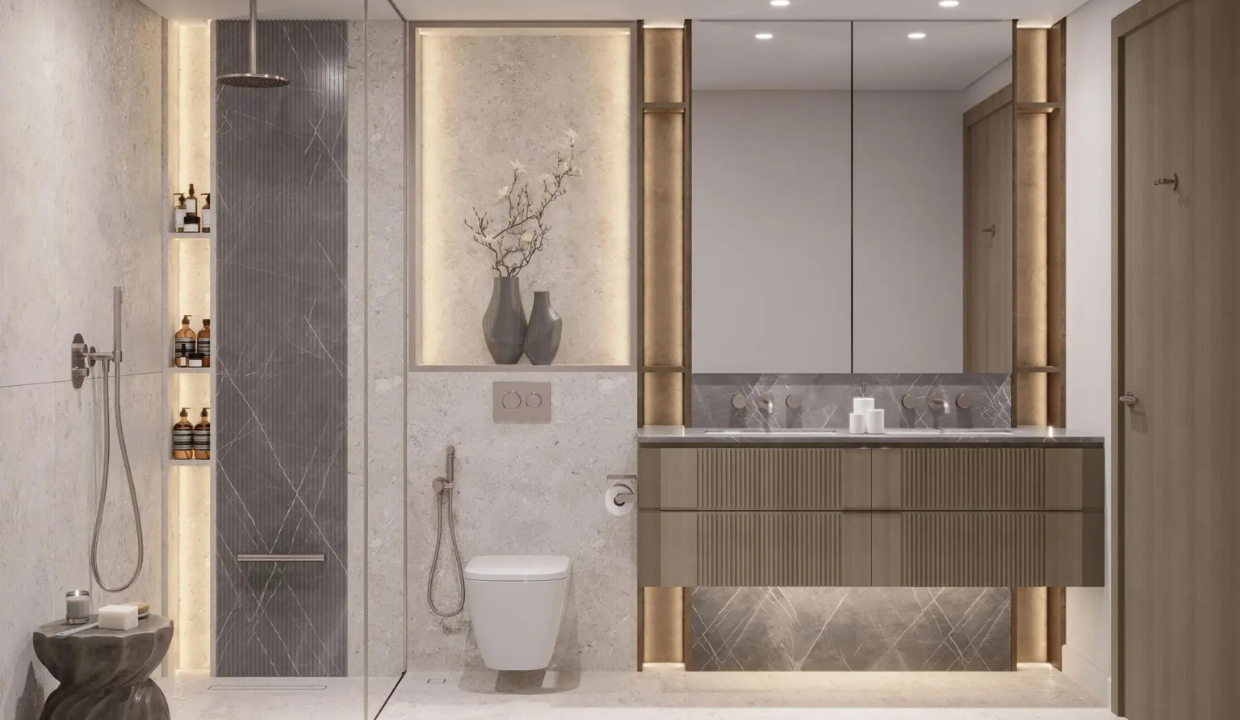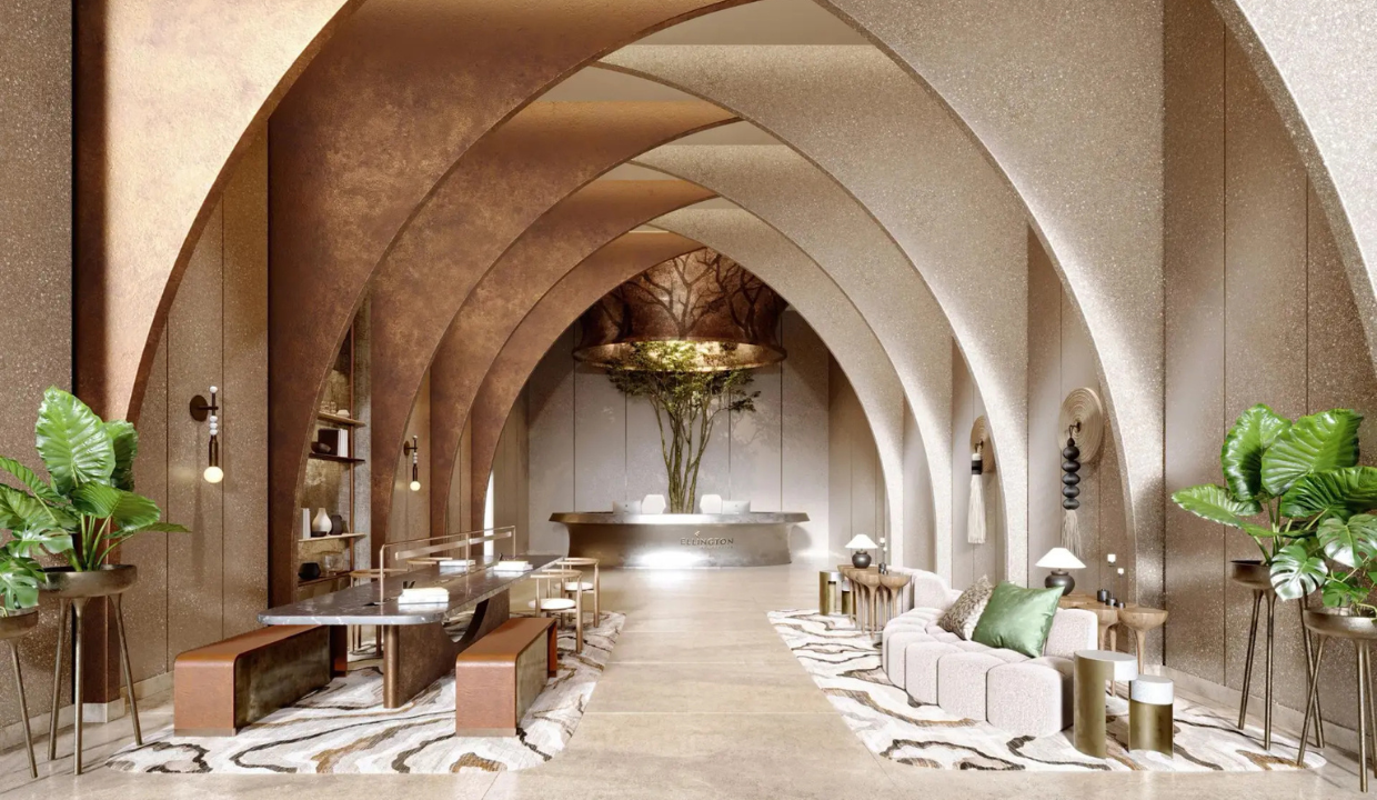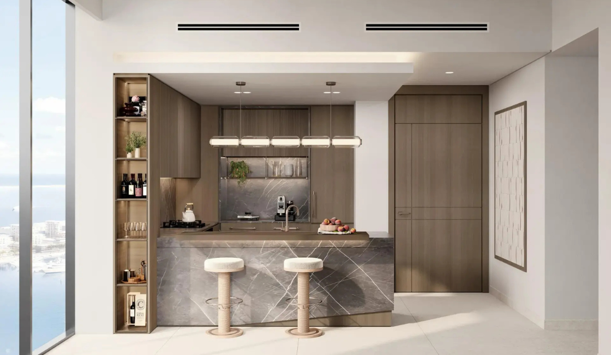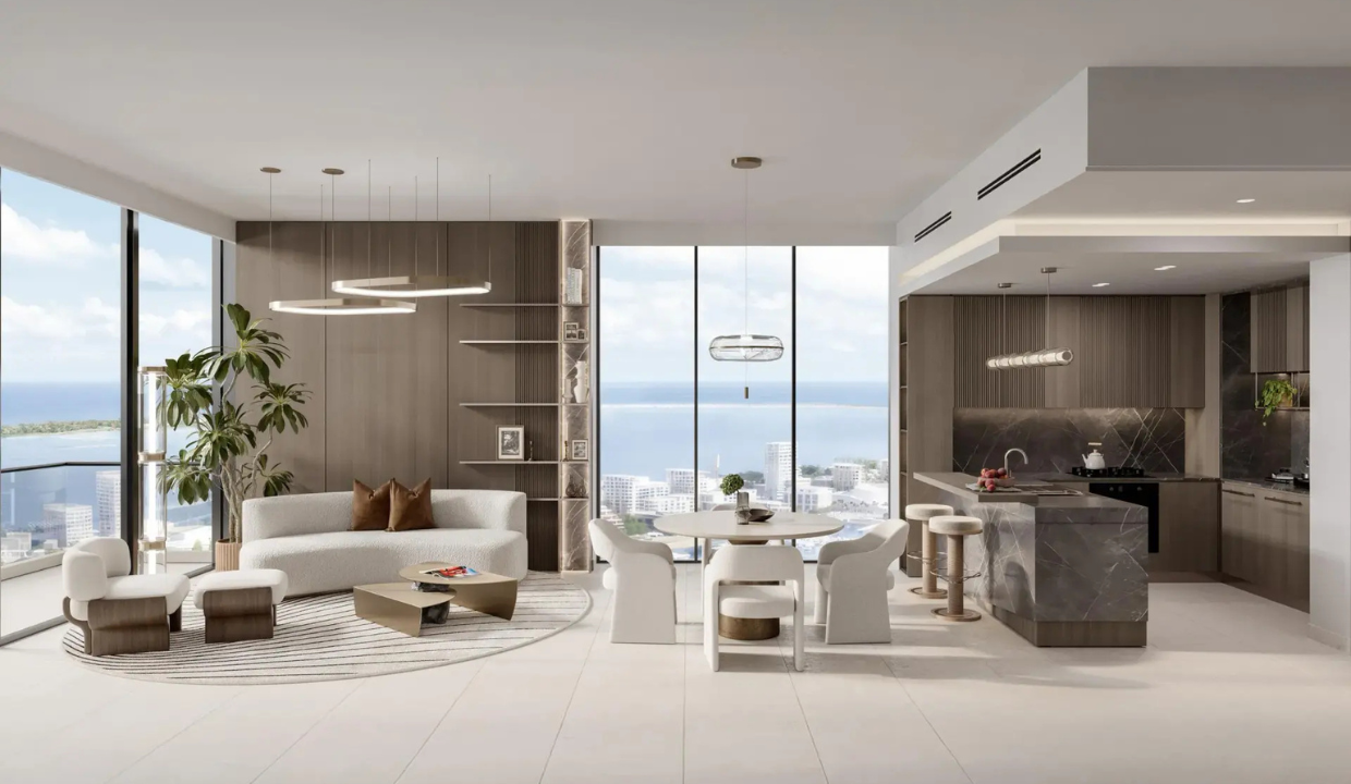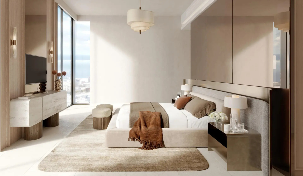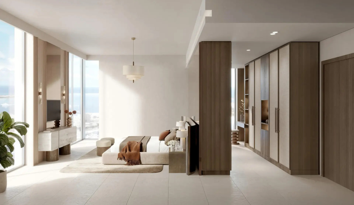 • Elegant interiors with natural textures, soft palettes, open layouts, and panoramic views of the Gulf, marina & Downtown Dubai