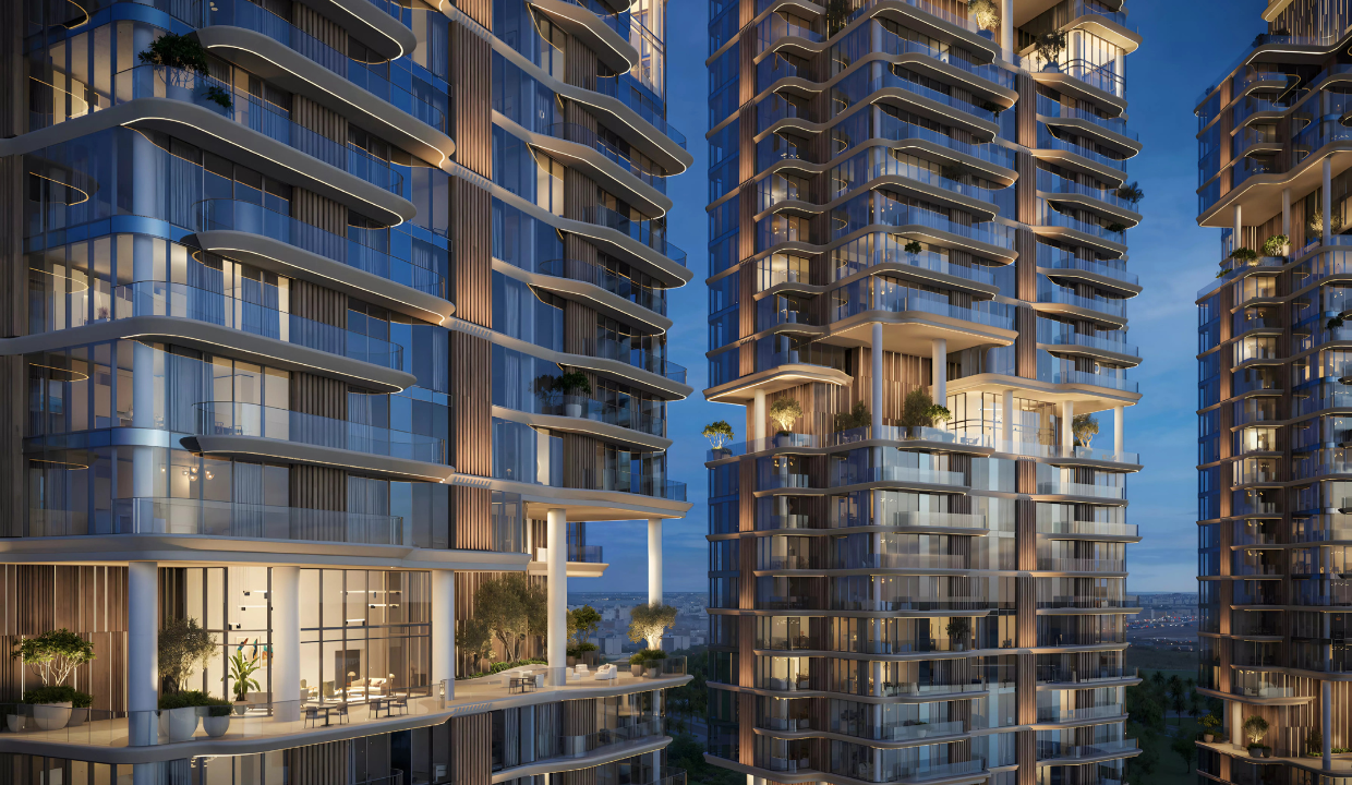 Soft edges, filleted corners, and continuous balcony lines shape the façades, while sky gardens carve dramatic recesses into the vertical structure, creating a sense of light, space, and greenery even from the outside.