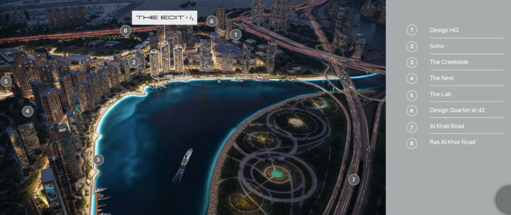 The Edit at d3 by Meraas is a design-inspired waterfront residential development located in Dubai Design District, one of Dubai’s most creative and vibrant communities. The project features three sculptural towers offering contemporary 1- to 4-bedroom apartments and exclusive penthouses, crafted for modern urban living with artistic architecture, green spaces, and premium lifestyle amenities.